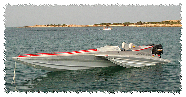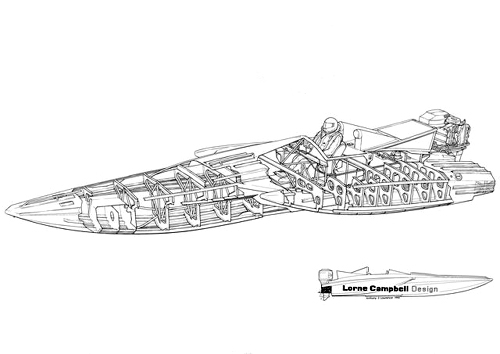 Von der Offshore Agency Prettin komplett restauriert und auf heutigen Standard aufgerüstet, beeindruckt dieses Lorne Campbell Design zuerst durch sein Aufsehen erregendes Erscheinungsbild und danach mit spektakulären Fahrleistungen und Rauwassereigenschaften, die sonst nur mit deutlich größeren Offshorebooten und mit mindestens 1000 PS mehr Leistung erreicht werden können.