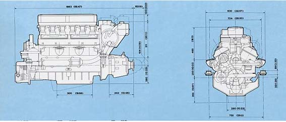The engine block and cylinder heads are made from saltwater-resistant aluminium, cylinder liners, guides and valve seats are machined in. The camshaft is driven by two silent-operation chains and the valves are in a V-arrangement.